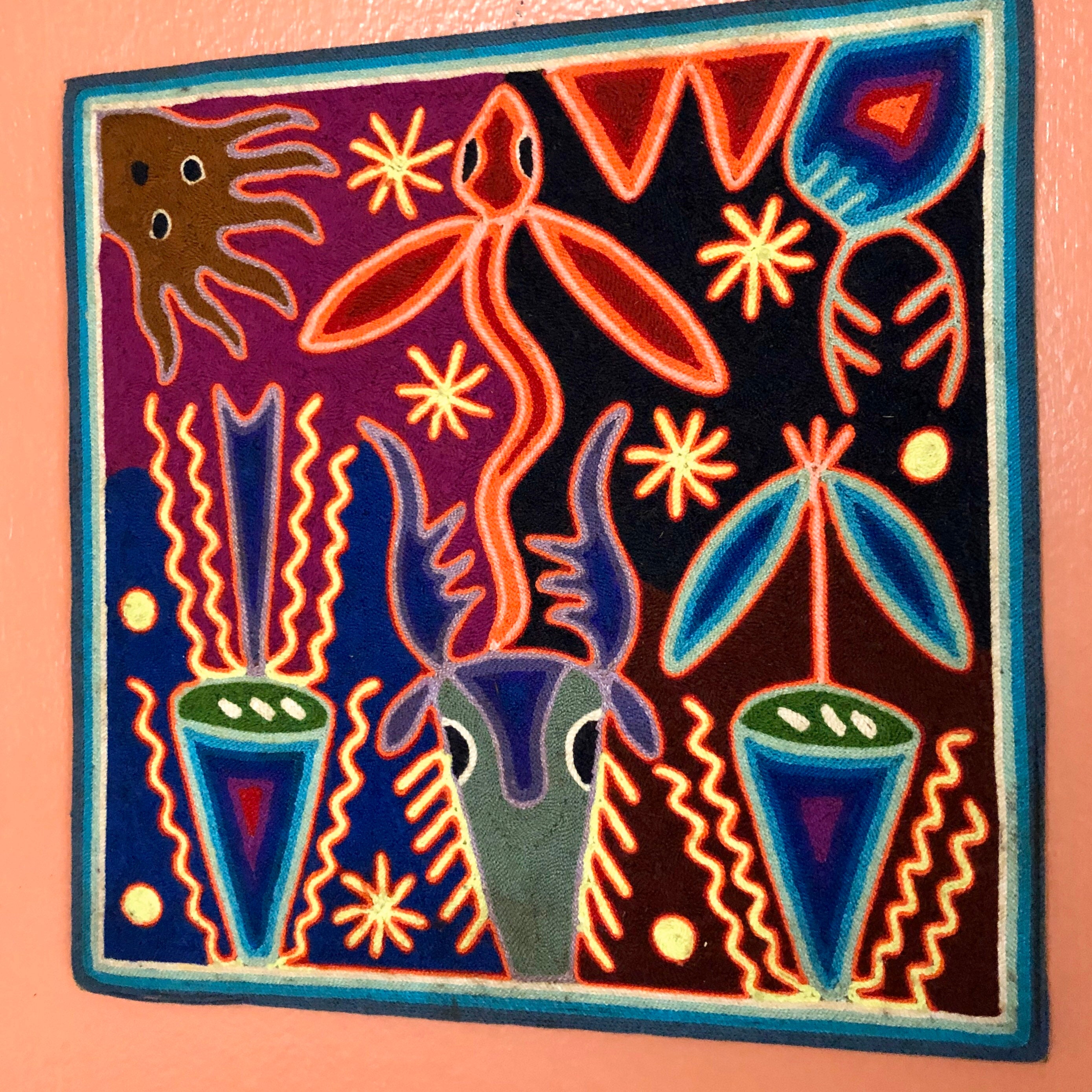 Huichol Yarn Art - 12 inches 12 - Yarn paintings are an artistic expression of religious symbol and comes to also enrich the referential field of the word. The Huichol are an indigenous tribe of about.